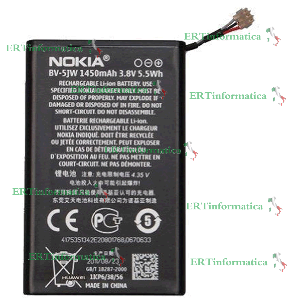 BATTERIA ORIGINALE NOKIA BV-5JW NOKIA 9 LUMIA 800 1450mAh 5.5Wh 3.8V