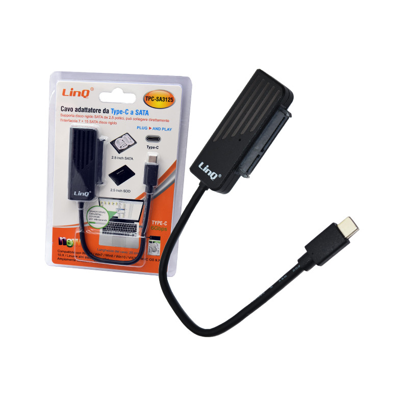 Lunghezza del cavo: 20 cm,La lunghezza totale del prodotto è 26 cm.Chip: JMS578,Materiale: plastica ABS,Interfaccia TYPE-C,Velocità di trasmissione: fino a 6 Gbps,Supporta disco rigido SATA da 2,5 pollici, può collegare direttamente l'interfaccia SATA 7 + 15 disco rigido meccanico da 2,5 pollici (HDD) e l'unità a stato solido (SSD); supporta la velocità di trasferimento SATA: SATA 3 (6 Gbps), SATA 2 (3 Gbps),Supporto hot swap, nessun alimentatore aggiuntivo (alimentazione TYPE-C: 5V / 1000mA5V-100),Sistema di supporto: XP / Win7 / Win8 / WIN10 / Mac OS10.2 e il sistema più recente, ampiamente utilizzato in notebook, computer desktop, server, ecc.