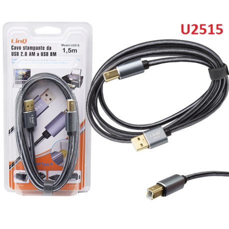 Modello LINQ: U2515Lunghezza: 1,5 metriSezione del filo: (28 + 24) TC + 64B rete di cotone,0D 4.8Scocca in alluminio,Adatto per dispositivi con porte USB quadrate come stampanti, fax, fotocopiatrici, macchine multifunzione e scanner