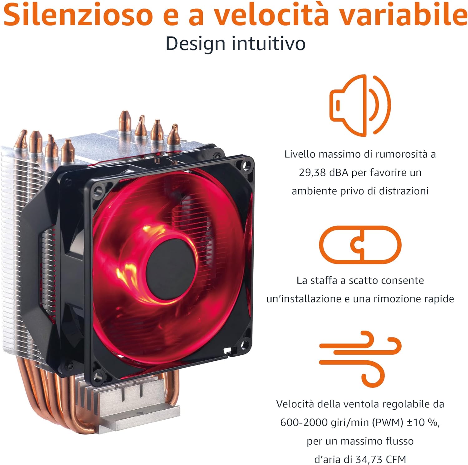 Ventola di raffreddamento della CPU con tecnologia Cooler Master; dimensioni compatte ideali per sistemi con fattore di forma ridotto