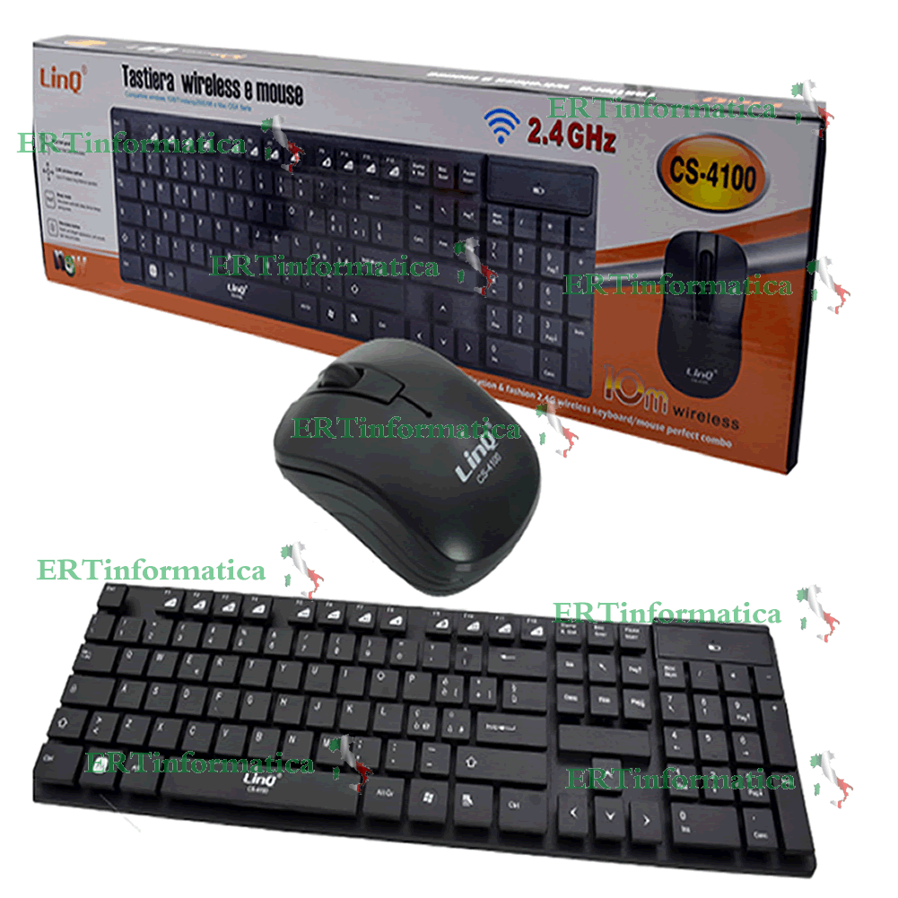KIT TASTIERA MULTIMEDIALE E MOUSE WIRELESS 2.4GHz SENZA FILI WIFI LINQ 4100